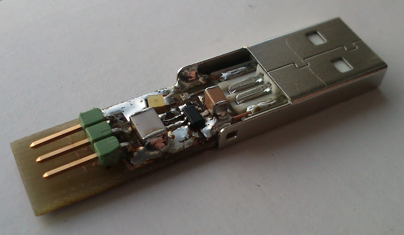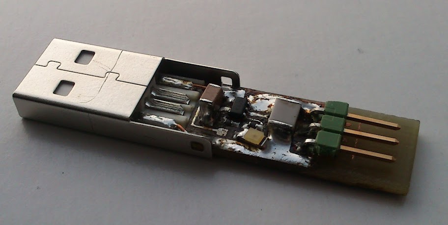For the heck of it, I went ahead and tried to do as you said–lay out a PCB that includes the USB plug (not as a separate component, but as part of the PCB, like the USB business card), and not only was I able to get a smaller overall footprint, I was able to do it on a single layer, with no vias. Overall dimensions: 0.875″ x 0.55″, including the USB plug (0.475″). Replace the plug OP used with a 2-pin right-angle pin header, and it goes down to about 0.75″ length.