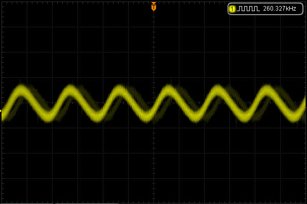 On the bottom there are two N type RF connectors, and I reasoned that if I put the oscilloscope on them I should be able to see something happening as I manipulated the controls. One of the connectors didn’t seem to have anything of interest going on, but on the second I saw the confirmation I was looking for:
