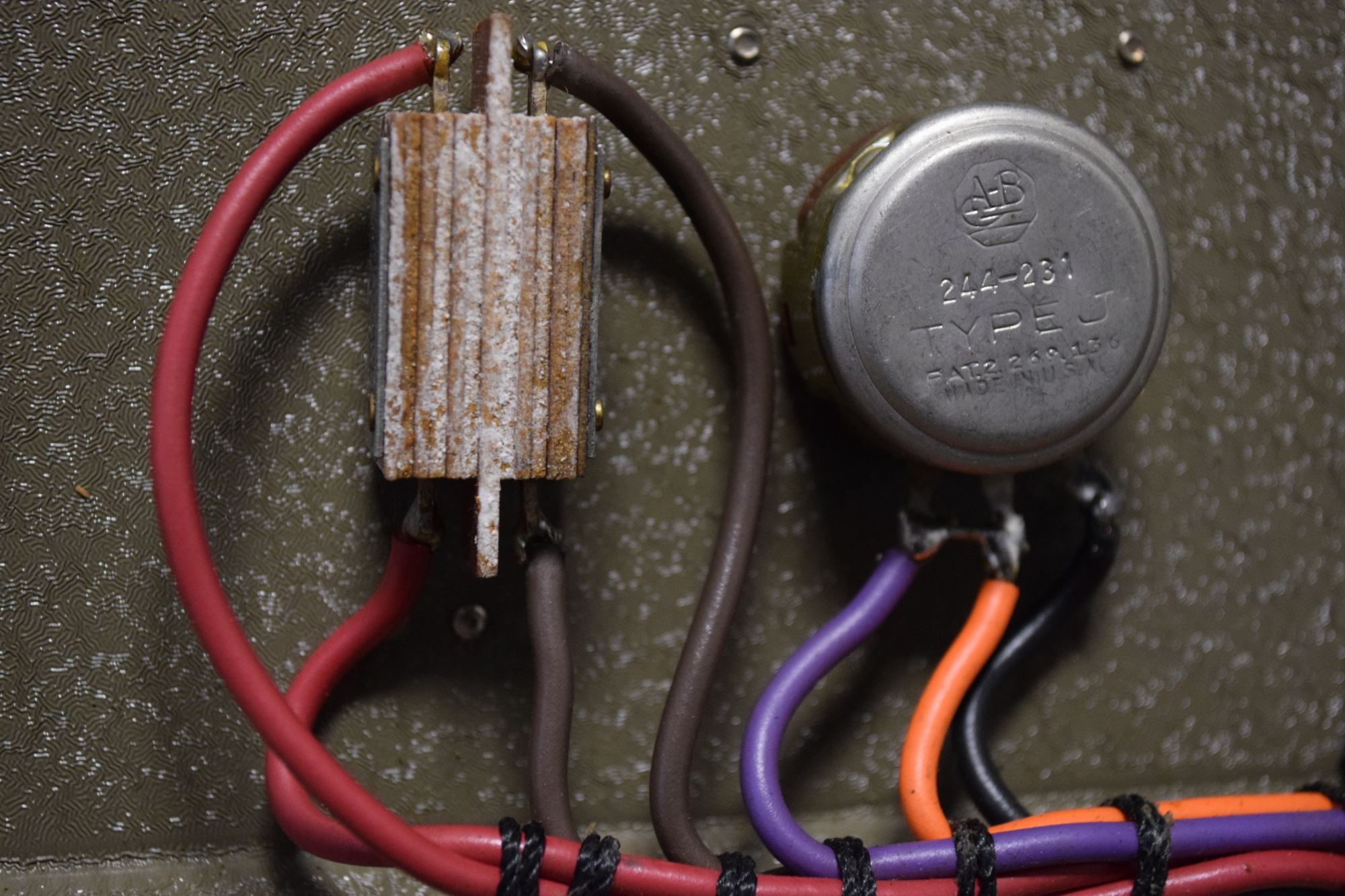 The bundle of wire is wrapped up with loops of black thread every 10mm or so, which was certainly done by hand. It’s incredible to feel the connection to the manufacturing workforce of the time. In all likelihood, a woman who was part of the labor force who stepped up to support the war effort was tasked with tying these little thread loops around bundles of wires for eight hours a day alongside those workers routing the wires and doing the point-to-point soldering.