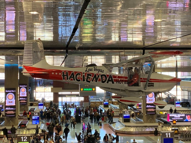 Afterwards, Cook continued on as a pilot, while Timm resumed working on slot machines at the casino. As for the plane, it was shown off at the Hacienda for two years after the record flight. It then went to a new owner up in Canada for some years, before Timm’s son Steve located it and brought it back to Vegas in the late 1980s. The plane now hangs in the McCarran International Airport, above the baggage claim area for incoming passengers.