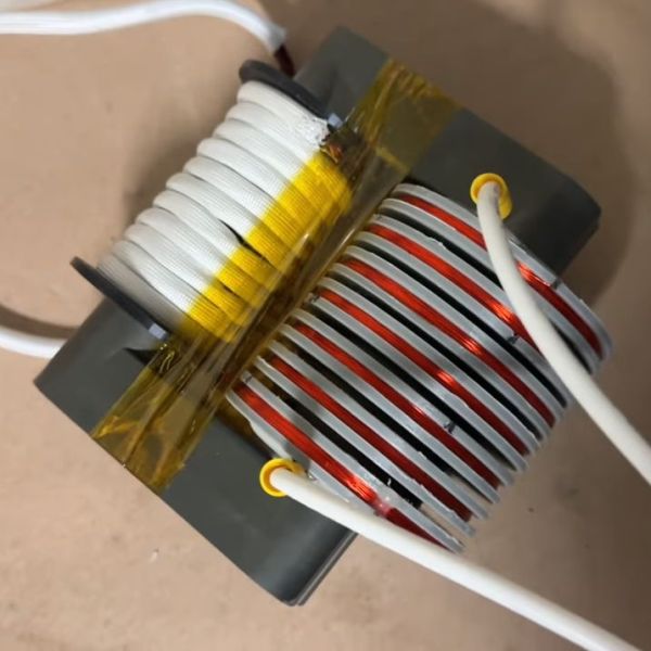 To decrease the likelihood of arcing, the transformer was placed in a plastic container filled with enough mineral oil liquid dielectric to cover the secondary. After degassing in a vacuum chamber for a day, [SciTubeHD] hooked the primary to a couple of different but equally formidable-looking full-bridge inverters for testing. The coil was capable of some pretty spicy arcs — [SciTubeHD] measured 20 amps draw at 35 volts AC input, so this thing isn’t to be trifled with. STL files for the core parts are coming up soon; we trust schematics for the power supply will be available, too.