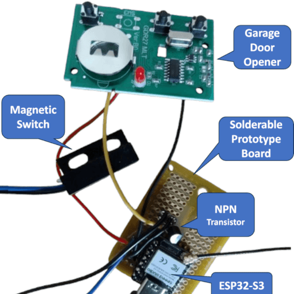 To interface the ESP32 with the garage door itself, [Juan] went the easy route. To trigger opening or closing the door, the ESP32 merely flicks an IO pin to toggle a transistor, which is hooked up to the button of the original garage door opener. Meanwhile, the ESP32 is also hooked up with a magnetic switch which is activated by a magnet on the garage door itself. This serves as a crude indicator as to the current status of the door—whether currently open or closed. This is crucial to ensure the indicated door status shown in the web app remains synced with the status of the door in reality.