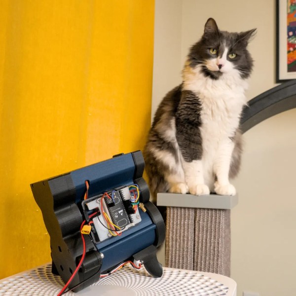 The wheel itself is an off the shelf model called “One Fast Cat”; apparently these are quite cheap second hand as most cats don’t really see the point in exercise. [MethodicalMaker] glued evenly-spaced magnets along the rim in order to track the rotation with a hall effect sensor. A microcontroller is watching said sensor, and is programmed to release the treats after counting off a set number of revolutions. Control over the running distance and manual treat extrusion is via web portal, but the networking code had difficulty on the Arduino R4 [MethodicalMaker] started with, so he switched to an ESP32 to get it working.