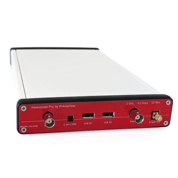 This new Pro version was funded on Crowd Supply in April this year and increases the bandwidth from 60 MHz to 2 GHz, the vertical resolution from 8 to 12 bits, and the sample rate from 125 MS/s to 3.2 GS/s. Selling for $999 it claims to be the first open-everything, affordable, high-bandwidth, real-time sampling USB oscilloscope.