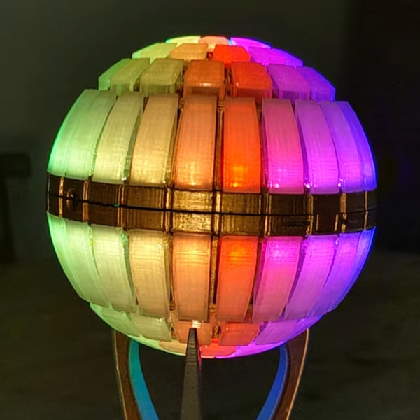 The scale is small — the sphere measures just 98 mm (3.6 inches) in diameter — but that just means it’s accessible enough to be fun. The build is based around various sizes of WS2812B addressable LED rings, and contains 120 individual RGB LEDs in total. They’re wrapped up in a 3D printed housing which does a great job of diffusing the light. Transparent filament was used to print parts that light up with a richly-saturated glow with few visible hotspots. Commanding the LEDs is an ESP8266 microcontroller in the form of a Wemos D1 Mini, which provides plenty of grunt to run animations as well as great wireless connectivity options. [AGBarber] relied on their own Pixel Spork library to handle all the cool lighting effects. Files are on GitHub for the curious.