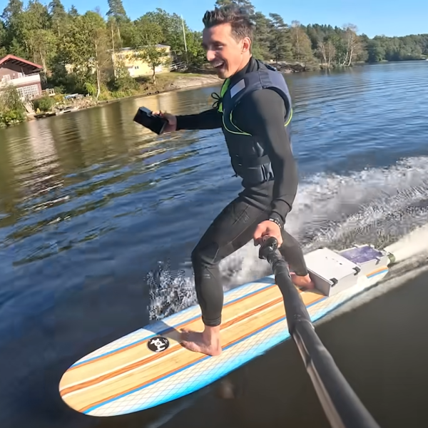 If you’re unfamiliar with the world of electric surfboards, the concept is relatively simple. Stick one or more electric ducted fan thrusters on the back, add some speed controllers, and power everything from a chunky bank of lithium-ion batteries. Throw in a wireless hand controller, and you’ve got one heck of a personal watercraft.