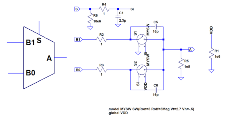 The component in question here is an analog multiplexer, which is normally used to select one of two (or several) signal lines and pass them through to an output. Unlike digital multiplexers which only pass 1s and 0s, analog multiplexers can pass analog signals since the transistors aren’t driven to saturation. He has come up with an entire system of logic gates using these components, with trickier devices like latches eventually implemented with help from a capacitor.