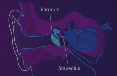 The stapedius reflex (also known as the acoustic reflex) is one of the body’s involuntary, instantaneous movements in response to an external stimulus—in this case, certain sound levels. When a given sound stimulus occurs to either ear, muscles inside both ears contract, most specifically the stapedius muscle in humans. When the muscle contracts, it has a stiffening effect on the ossicular chain—the three tiny bones that connect the ear drum to the cochlea in the inner ear. Under this condition, less vibrational energy is transferred, reducing damage to the cochlea from excessive sound levels.