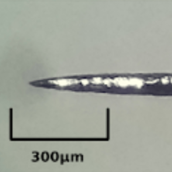 [Vik Olliver] has been extending the lower resolution limits of 3D printers with the RepRapMicron project, which aims to print structures with a feature size of ten micrometers. A molten plastic extruder would be impractical at such small scales, even if a hobbyist could manufacture one small enough, so instead [Vik]’s working on a system that uses a very fine needle point to place tiny droplets of UV resin on a substrate. These points have to be sharper than anything readily available, so his latest experiments have focused on electrochemically etching his own needles.
