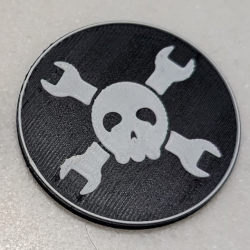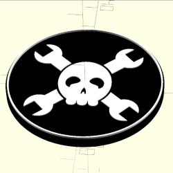 colors=[ "black", "white", "blue","black"]; current_color=-1; include <colorstl.scad> $fn=128; radius=25; // radius of coin thick=3; // thickness of coin base topdeck=thick-0.1; ring_margin=0.5; ring_thick=0.5; feature_height=0.8; inner_ring_outer_margin=radius-ring_margin; inner_ring_inner_margin=inner_ring_outer_margin-ring_thick; module center2d(size) { translate([-size[0]/2, -size[1]/2]) children(); } colorpart(0) cylinder(r=radius,h=thick); // the coin base // outer ring colorpart(1) translate([0,0,topdeck]) difference() { cylinder(r=inner_ring_outer_margin,h=feature_height); translate([0,0,-feature_height]) cylinder(r=inner_ring_inner_margin,h=feature_height*3); } // the wrencher (may have to adjust scale depending on where you got your SVG) colorpart(1) translate([0,0,topdeck]) scale([.3,.3,1]) linear_extrude(height=feature_height,center=true) center2d([118, 108]) import("wrencher2.svg");