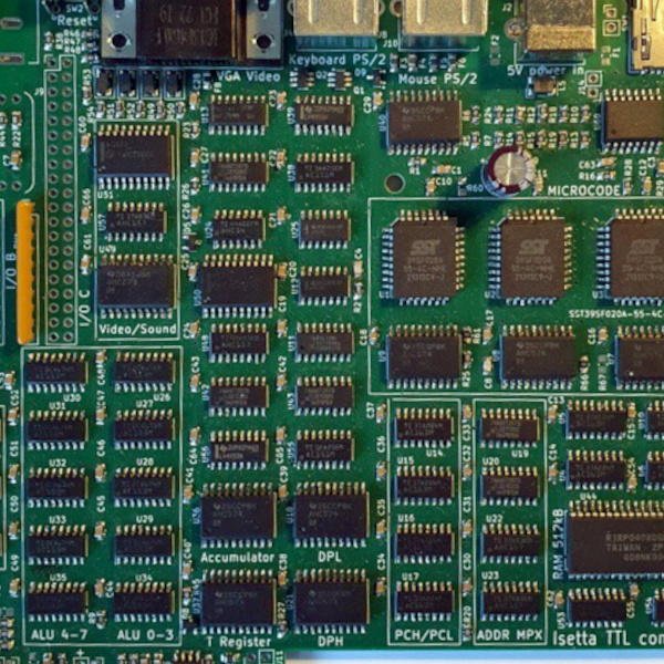 Our Hackaday colleague [Bil Herd] is known for being the mind behind the Commodore 128, a machine which famously had both a 6502 and a Z80 processor on board. The idea of a machine which could do the job of both those processors in hardware while containing neither would have blown the mind of any 1980s computer enthusiast, yet that’s exactly what [Roelh]’s Isetta TTL computer does. It’s an extremely clever design whose targeted microcode allows the processor-swap trick, and since he’s brought it from prototype to production and has it running SymbOS since we last saw it, it’s time we gave it another look.