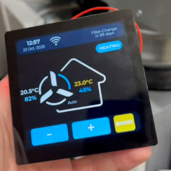 HRVs are systems that exchange fresh, outside air with stale, inside air while passing them both through a heat exchanger to keep from wasting energy. Many systems run continuously but they aren’t always needed, so some automation is beneficial. This upgrade from [vincentmakes] improves the default display for a Zehnder Comfoair Q350 HRV with a color display as well as adding it in to a home automation system, letting a user control fan speeds remotely as well as alerting the user when it’s time for filter replacements and providing up-to-date information from all the sensors in the HRV.