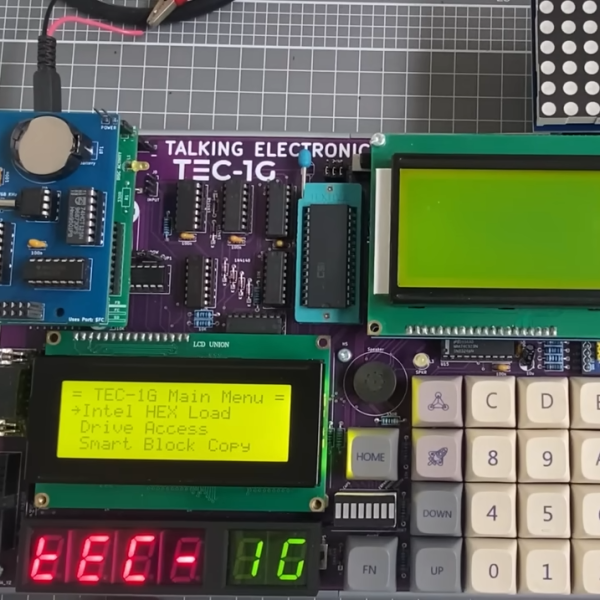 [bchiha] has achieved pre-emptive multitasking on the TEC-1G Z80 computer, a modern reimagining of the classic Talking Electronics TEC-1 from the 1980s. The proof of concept code allows running up to eight separate tasks at once. Task switching runs on interrupts, triggered at approximately 50 Hz. When an interrupt fires, the CPU registers are transferred onto that task’s stack, and the next task’s stack is swapped to the stack pointer to allow execution of the new task to proceed. There is an overhead, of course, with [bchiha] noting that the task swapping routine itself takes about 430 clock cycles to run in between tasks.