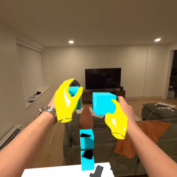 The app is simplicity itself: pressing A or X on the controller spawns a cube, which you can place wherever you like in virtual space by moving the controller in real space. The trigger then saves the cube position. Grabbing a cube uses the controller’s grab buttons. You can even change colors (with B or Y), but like in OpenSCAD it appears that’s not actually going to have any effect on the exported STL. Check it out in action in the demo video embedded below.