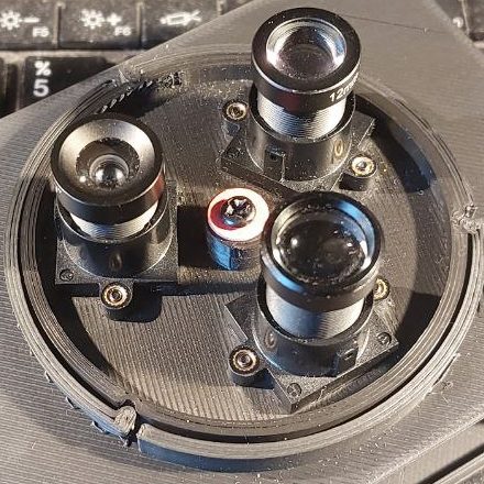 Have you ever seen photos of retro movie sets where the cameras seem to be bedazzled with lenses? Of course you can only film via one lens at a time, but mounting multiple lenses on a turret as was done in those days has certain advantages –particularly when working with tiny M12 lenses, like our own [Jenny List] recently did with this three-lens, Pi-zero based camera.
