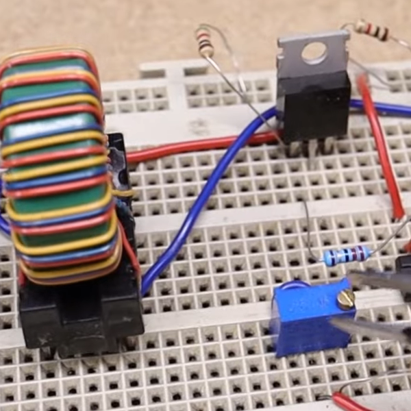 These horns are available, and he found an off-the-shelf solution with four piezos and a large horn that seemed promising. Driving the elements, though, requires a 40kHz 100VAC signal. His original board didn’t work — but he’s not giving up. But, for now, he used a simple circuit on a breadboard. However, it didn’t make a strong vibration, even with a larger horn.