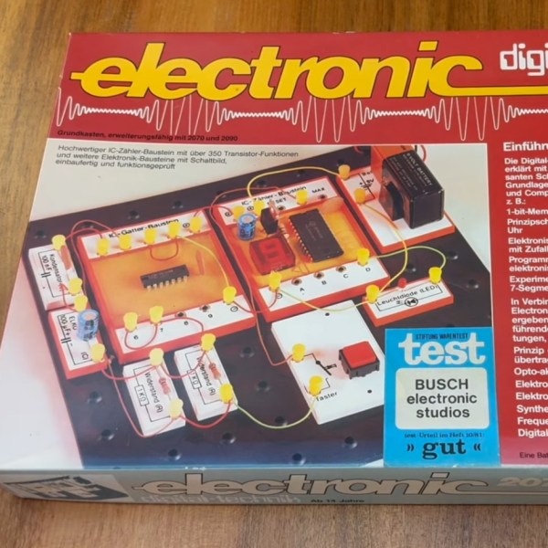 In the video, after showing us how to do switch debouncing, [Jason] runs us through making a counter with the digital components and then getting the counter to reset after it counts to five. This is done using NAND gates. Before he gets stuck into doing a project he takes a close look at the manual (which is in German) including some of the advertisements for other project labs from Busch which were available at the time. As he doesn’t speak German [Jason] prints out an English translation of the manual before working through it.