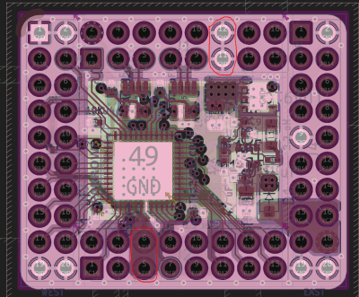 The module could perhaps use a key pin – there’s zero omissions in the outer dual-row, which leaves for a possibility of inserting this module rotated 180 degrees by accident, likely obliterating at least something on the module. If these modules are ever meant to be swapped during testing, i.e. using machined headers, I’d try and remove one of the pins from the equation – there’s a NC pin in one of the corners already, thankfully.