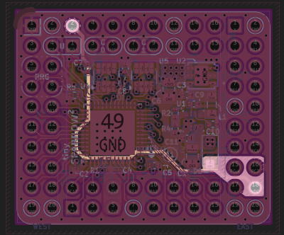 It took me a bit to try and find the ESD diodes mentioned in the README – I didn’t notice that they’re basically the only thing on the bottom layer. This is fine – protection elements like ESD diodes can be on a different layer, and as they’re SOT-23, they’re easy to solder on post-factum. This is quite a nice placement choice, in my opinion – you can basically solder this board with cheaper single-side assembly, use ESD-less boards for your bench testing, and then simply solder the few bottom side components onto “production” versions!