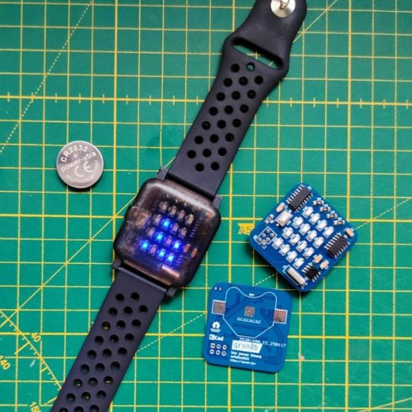 Over the decades we have seen many DIY clocks and wrist watches presented, but few are as likely to get you either drawing in the crowds, or quietly snickered at behind your back, as a binary watch of some description does. A wrist watch like [qewer]’s qron0b project which also uses BCD encoding to display the current time is among our more rare project types here, with us having to go all the way back to 2018 for a similar project as well as a BCD desk clock.