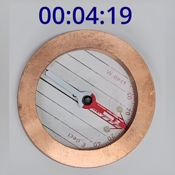 It’s hard to design a compass that settles quickly, even if it uses a strong magnet, because the Earth’s own magnetic field is just so weak, and the stronger the internal magnet is, the more likely it is to be thrown off by nearby magnetic objects. As a result, they tend to swing, overshoot, and oscillate around their final orientation for some time. Most compasses use liquid to damp this, but a few, mostly military compasses, use a conductive baseplate instead: as the magnet moves, it induces eddy currents in the baseplate, which create a weak magnetic field opposing its motion, slowing the magnet down. Inductively-damped compasses don’t get bubbles, but they don’t let you see a map through the baseplate. [The Map Reading Company] dealt with this by making the baseplate transparent and surrounding the compass needle with a ring of high-conductivity copper alloy. This gave him a clear baseplate compass for easy map reading which would never develop bubbles. It’s a simple hack, and should be easy to replicate, but it still seems to be a new design. In fact, [The Map Reading Company] is releasing most of the design to the public domain. Anyone can build this design.