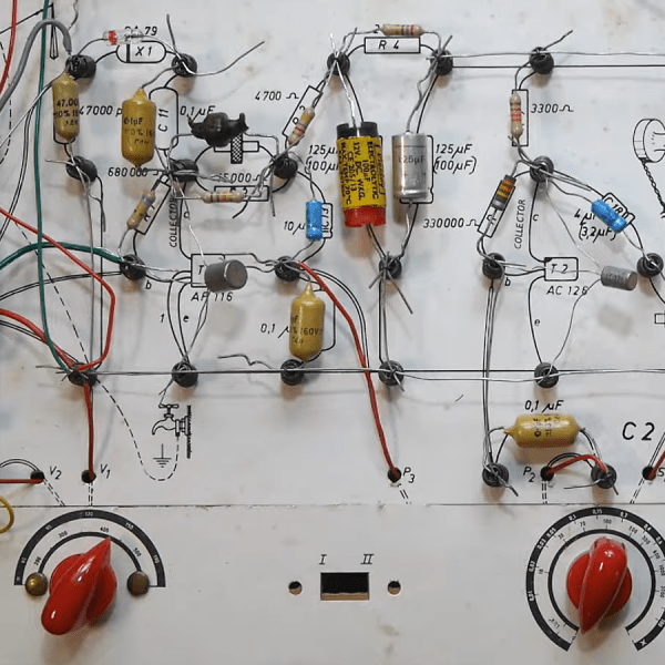 [Anthony Francis-Jones], like us, has a soft spot for the educational electronic kits from days gone by. In a recent video you can see below, he shows the insides of a Philips EE08 two-transistor radio kit. This is the same kit he built a few months ago (see the second video, below).