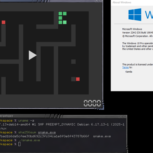 We’ve been aware of projects like Cosmopolitan that allow you to crank out a single executable that will run on different operating systems. [Kamila] noticed that the idea was sound, but that the executables were large and there were some limitations. So she produced a 13K file that will run under Windows, Linux, or even in a Web browser. The program itself is a simple snake game.