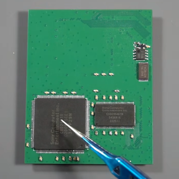 With a schematic in hand, drafting a smaller PCB than Sony built is made easier by the availability of multi-layer PCBs. In this case [Hobbyist] was able to get away with a four-layer board. He was also able to ditch one of the ICs from the donor mainboard, which he called a “sub-CPU” as its functionality was recreated on the “PSIO” board that’s replacing the original optical drive. The PSIO is a commercial product that has been around for years now, allowing Playstations to run from SD cards– but it’s not meant for the PSOne so just getting it working here is something of a hack. He’s also added on a new DAC for VGA output, but otherwise the silicon is all original SONY.