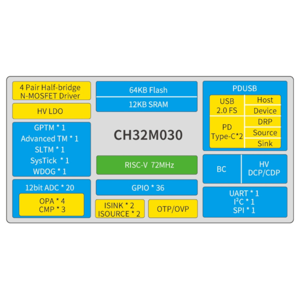 All of which brings us to the WCH CH32M030, a chip that’s been on the radar for a while and has finally broken cover. It’s the CH32 RISC-V microcontroller you may be familiar with, but with a set of four half-bridge drivers on board for running motors. A handy, cheap, and very smart motor controller, if you will.