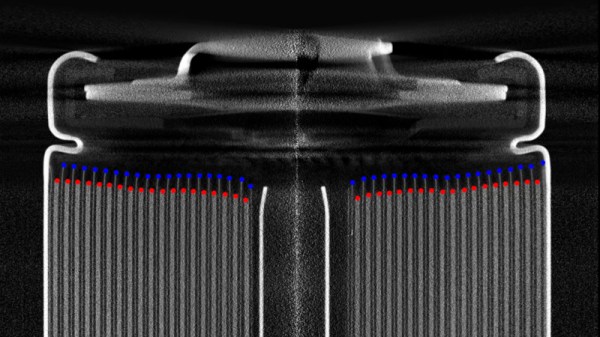 Lithium-ion cells deliver very high energy densities compared to many other battery technologies, but they bring with them a danger of fire or explosion if they are misused. We’re mostly aware of the battery conditioning requirements to ensure cells stay in a safe condition, but how much do we know about the construction of the cells as a factor? [Lumafield] is an industrial imaging company, and to demonstrate their expertise, they’ve subjected a large number of 18650 cells from different brands to a CT scan.