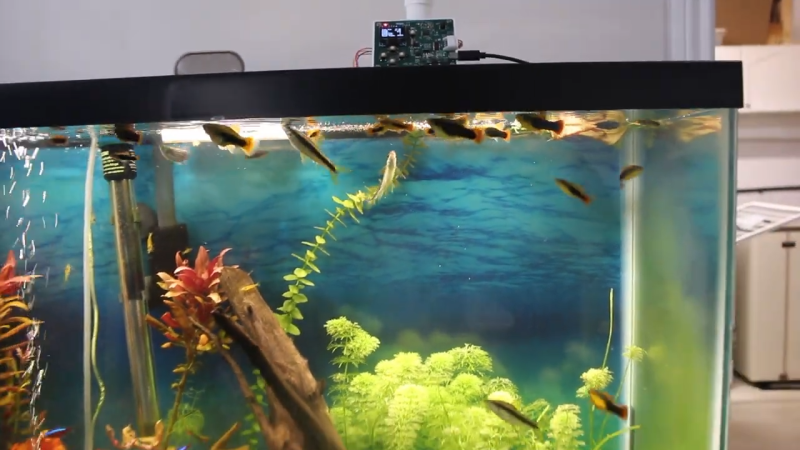 [Noisy Electrons] is a maker who also likes to keep fish. He sometimes needs to travel and keep his fish fed in the meantime, so he created an automated solution to handle that for him.