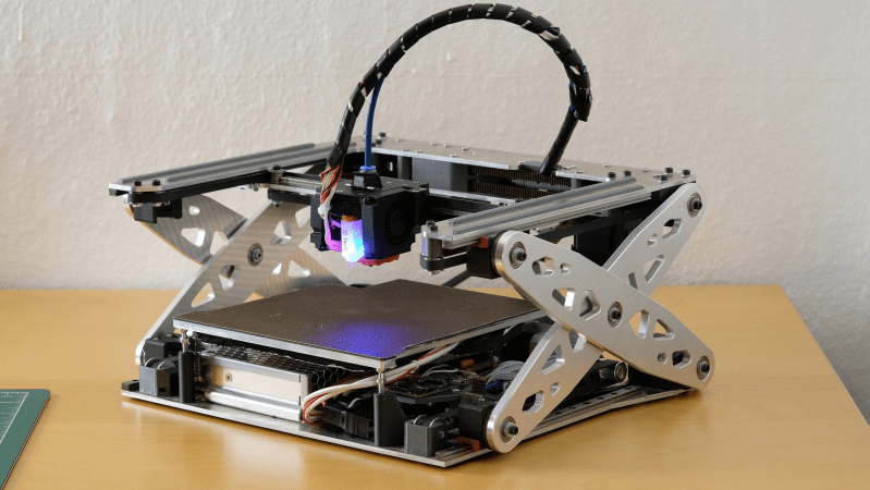 We don’t know about you, but one of the biggest hassles of having a 3D printer at home or in the ‘shop is the space it takes up. Wouldn’t it be useful if you could fold it down? Well, you’re in luck because over on Hackaday.io, that’s precisely what [Malte Schrader] has achieved with their Portable CoreXY 3D printer.
