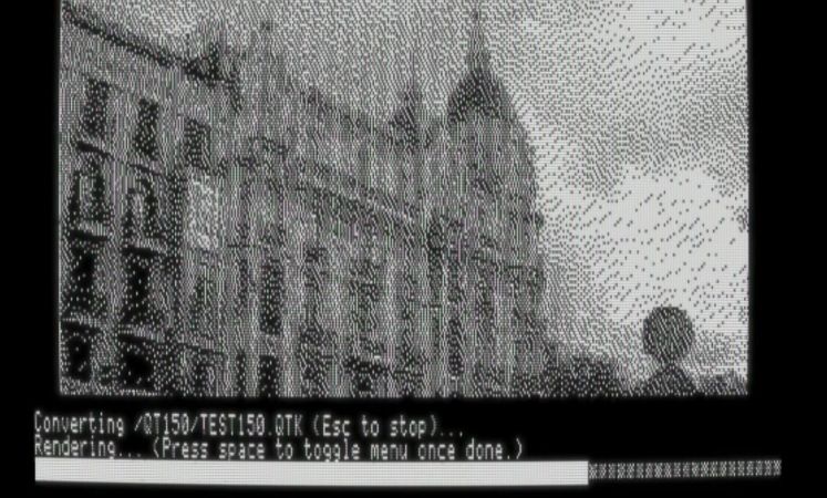 Targeting the typical ~1 MHz 6502 CPU in an Apple II, the dcraw QTK decoder formed the basis for an initial decoder. Many memory and buffer optimizations later, an early conversion to monochrome and various other tweaks later – including a conversion to 6502 ASM for speed reasons – the decoder as it stands today manages to decode and render a QTK image in about a minute, compared to well over an hour previously.