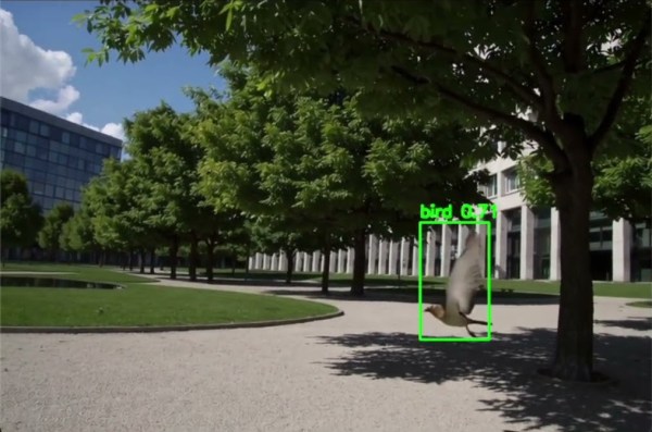Right now the system can only detect the presence of birds in general, but he hopes to build future versions that can identify birds with more specificity, perhaps down to the species. Identifying birds by vision is certainly one viable way of going about this process, but one of our other favorite bird-watching tools was demonstrated by [Benn Jordan] which uses similar hardware but listens for bird calls rather than looking for the birds with a vision-based system.