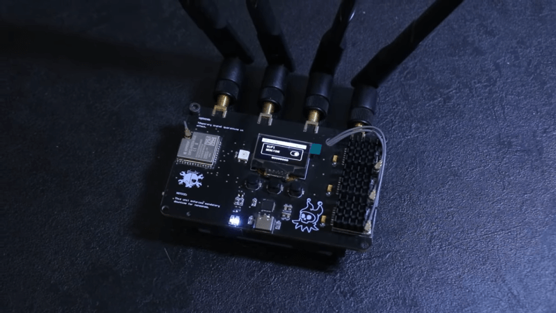 The build is based around an ESP32, with three tactile switches and an OLED display for the user interface. The microcontroller is hooked up to a trio of GT—24 Mini radio modules, which feed a bank of antennas on top of the device. Depending on the mode the device is set to, it will command these modules to jam Bluetooth, BLE, or Wi-Fi traffic in the area with relatively crude transmissions.