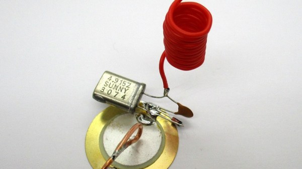 A piezo disk transducer is a handy part for reproducing beeps and boops, and can also function as a rudimentary microphone. Being a piezoelectric element, it can also generate usable power. Enough to run a radio transmitter? [b.kainka] is here to find out, with what may be the simplest possible transmitter circuit.